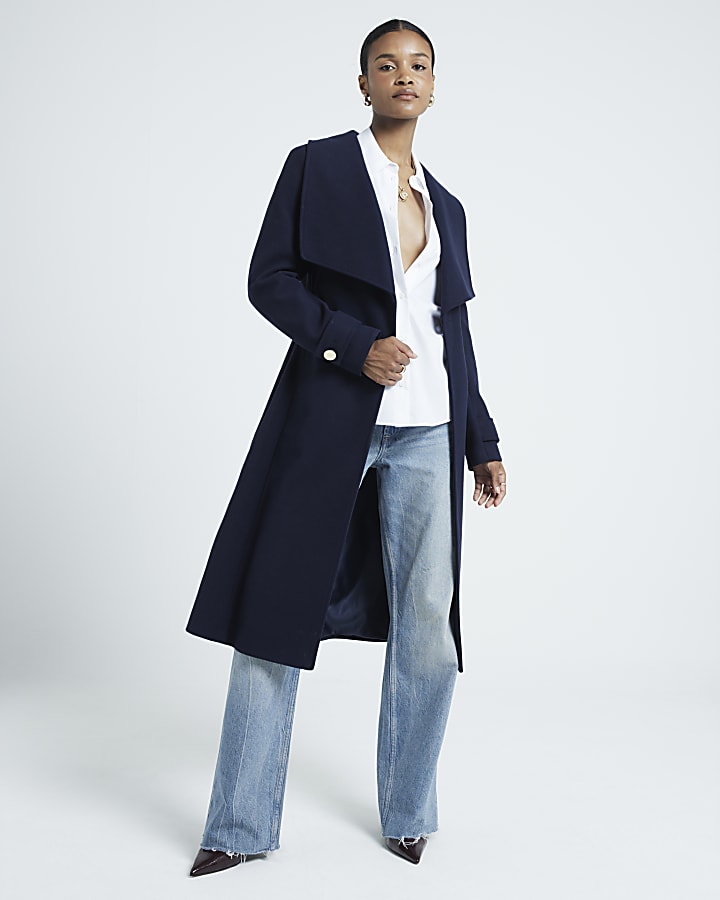 Product Name: Navy belted wrap coat best sale